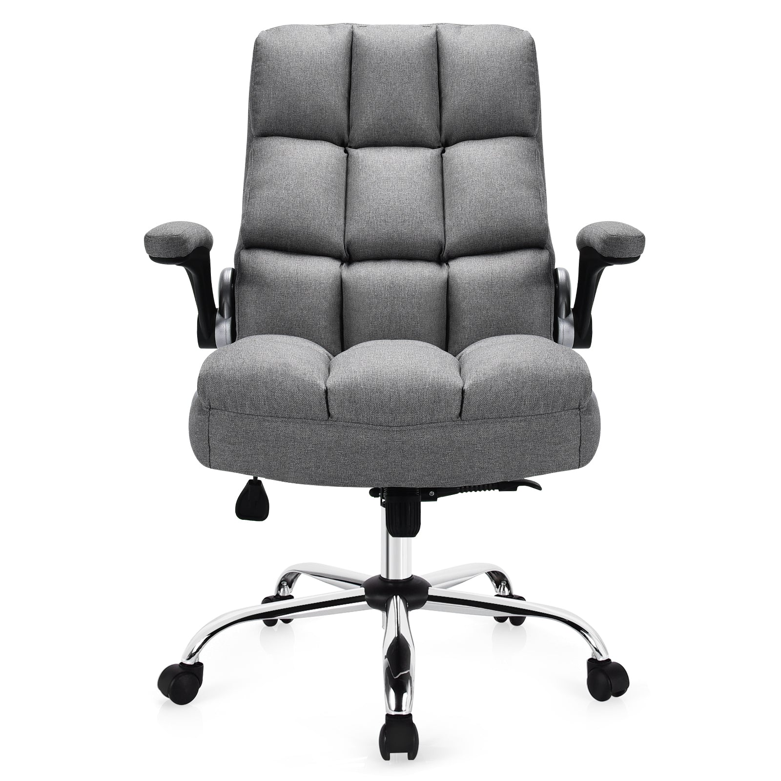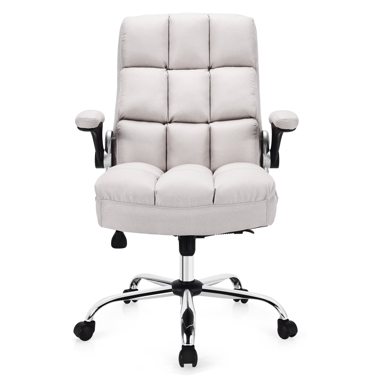 Executive Office Chair, Big and Tall Ergonomic Computer Chair, Adjustable Tilt Angle and Flip-up Armrest Linen Fabric Upholstered Chair with Thick Padding, High Back Managerial Chair