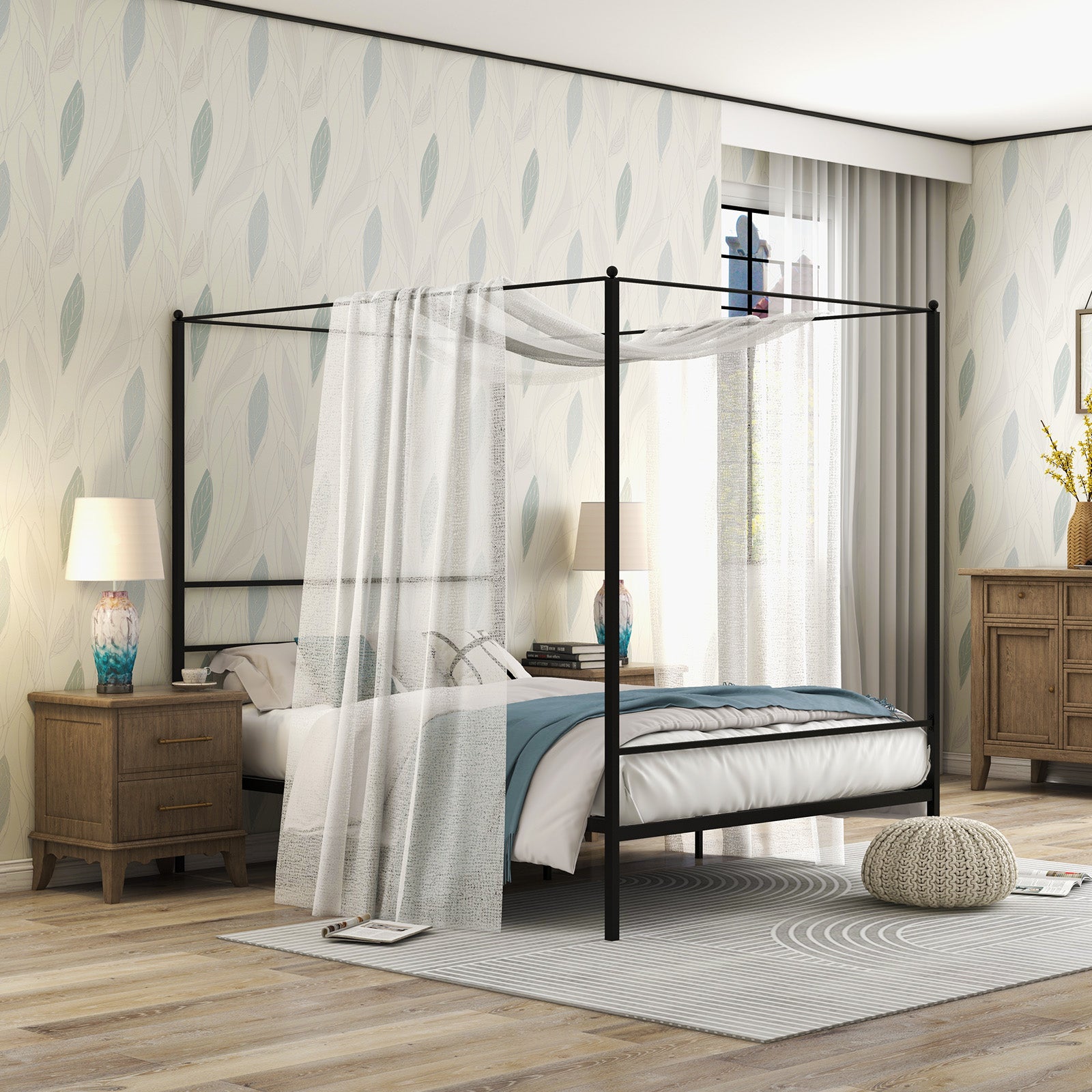 Giantex Metal Canopy Bed Frame, 4 Poster Canopied Platform Bed Frame, Mattress Foundation, No Box Spring Needed, Easy Assembly, Queen Size