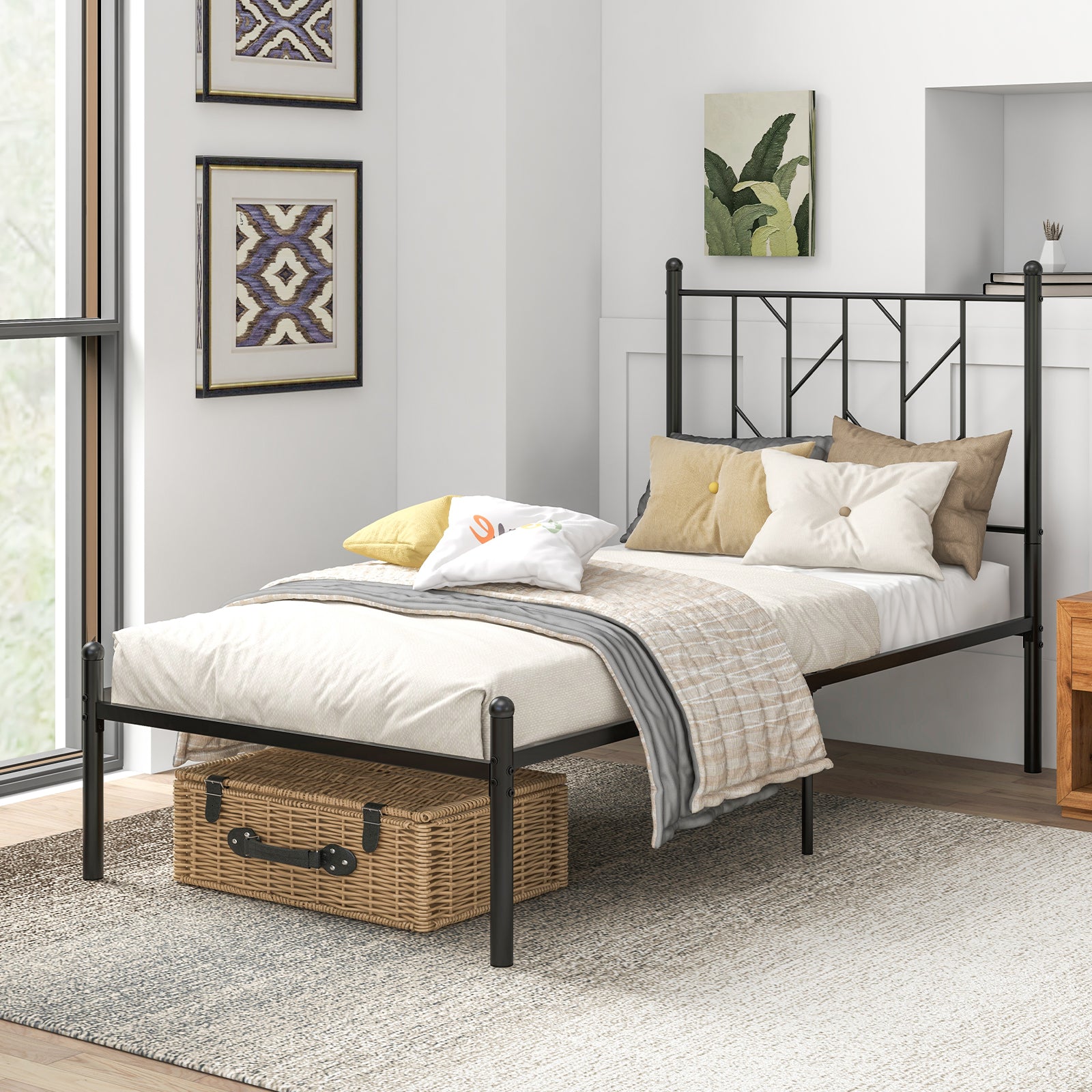 Giantex Twin Black Metal Bed Frame, Bed Frame w/Metal Slats Support, for Kid Guest Room, No Box Spring Needed