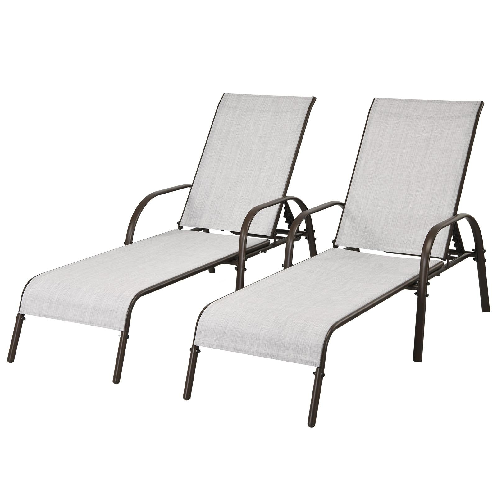 Giantex 2 Pcs Chaise Lounge Chair, Adjustable Reclining Lounge Chairs, Folding Recliners Patio Furniture for Backyard Lawn