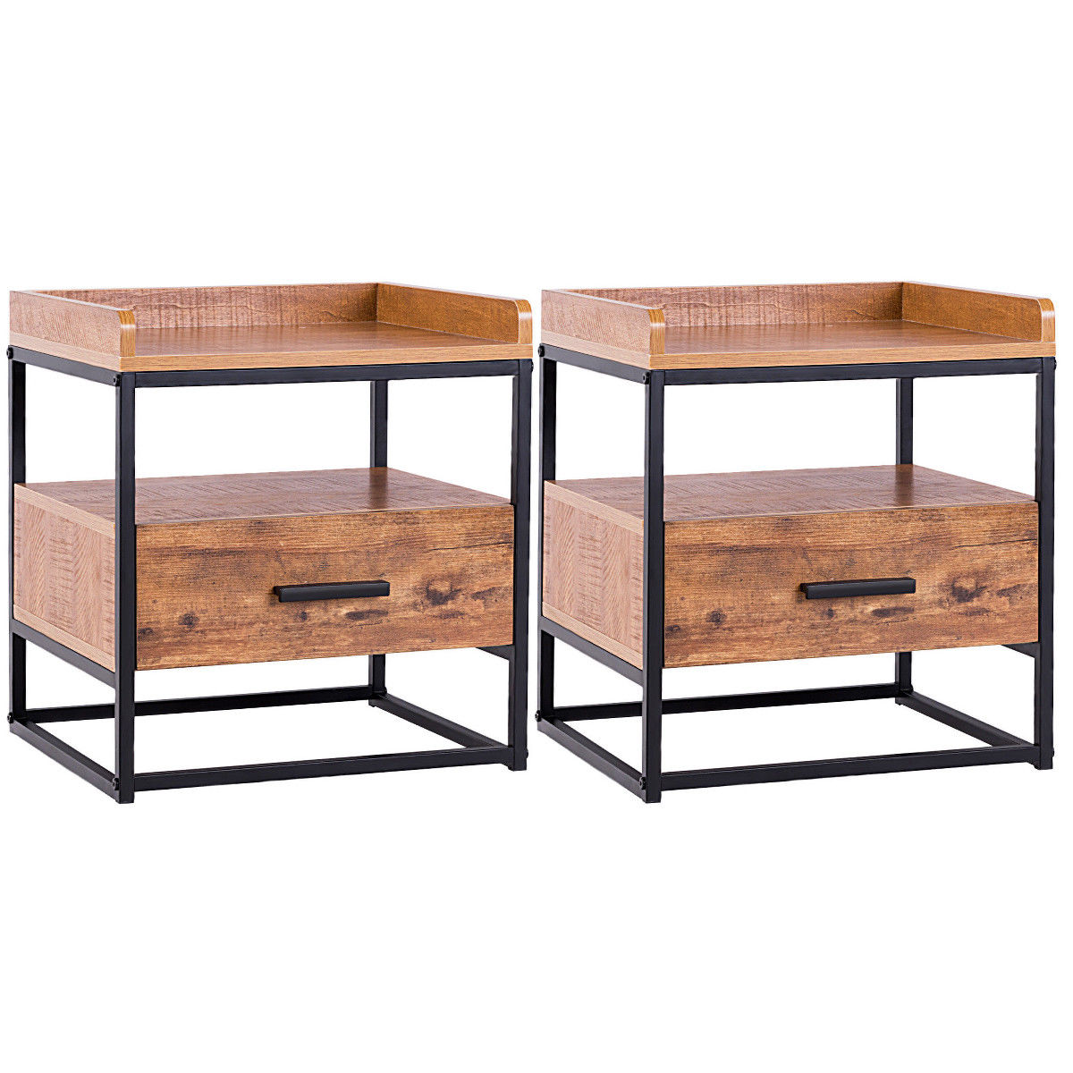 Giantex 2-Tiers End Side Table, Wooden Nightstand, Cabinet with Drawer and Rustic Shelf Decoration in Living Room,Bedroom,Lounge