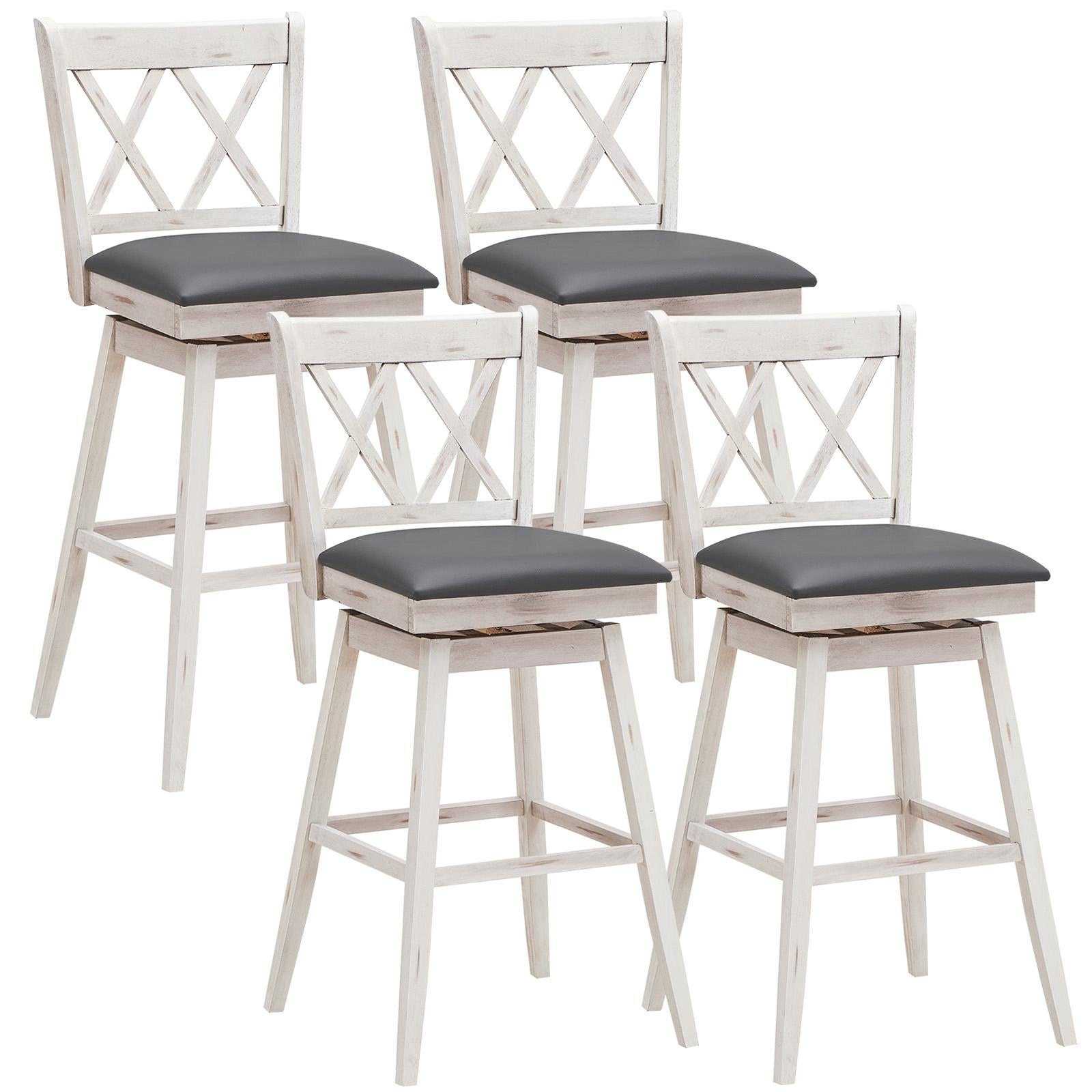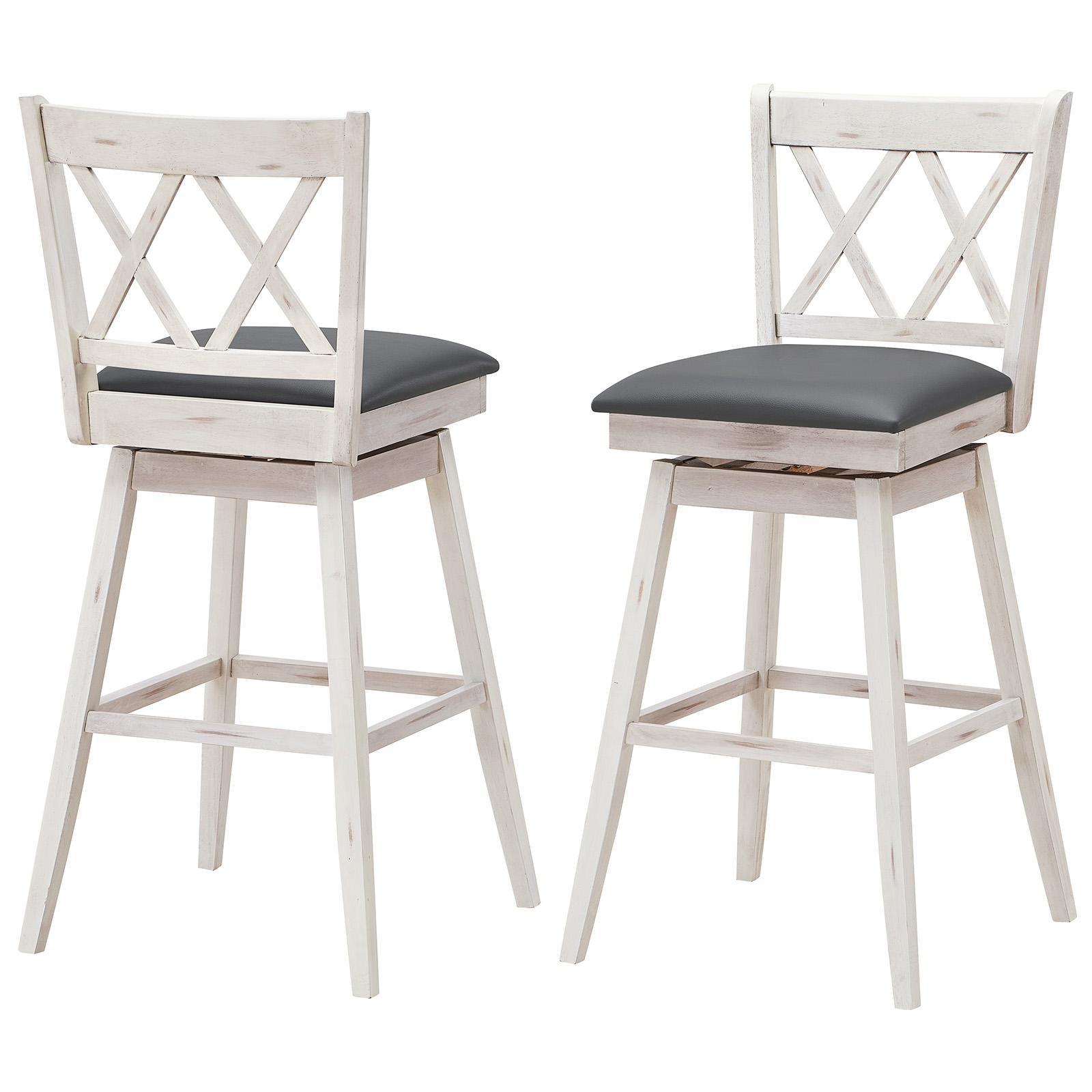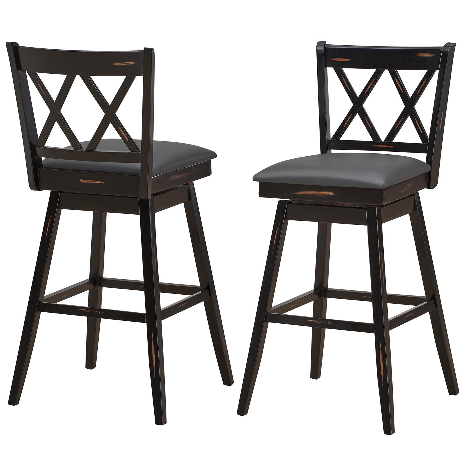 Enjoy a cup of coffee or dining while sitting on this rustic wooden barstool in the kitchen. Solid rubber wood frame provides stable and safety, upholstered seat provides a comfortable seat experience. You can lean into the comfortable seat back and casually place your feet on the footrest. The bar chairs also feature a swivel mechanism, lending to ease of motion while seated. This farmhouse barstool with x-shaped backing is a great addition for any kitchen or dining space. These stools look rustic and stylish, people can't resist pulling one up and joining the conversation, ideal for use in pub, bar, home.