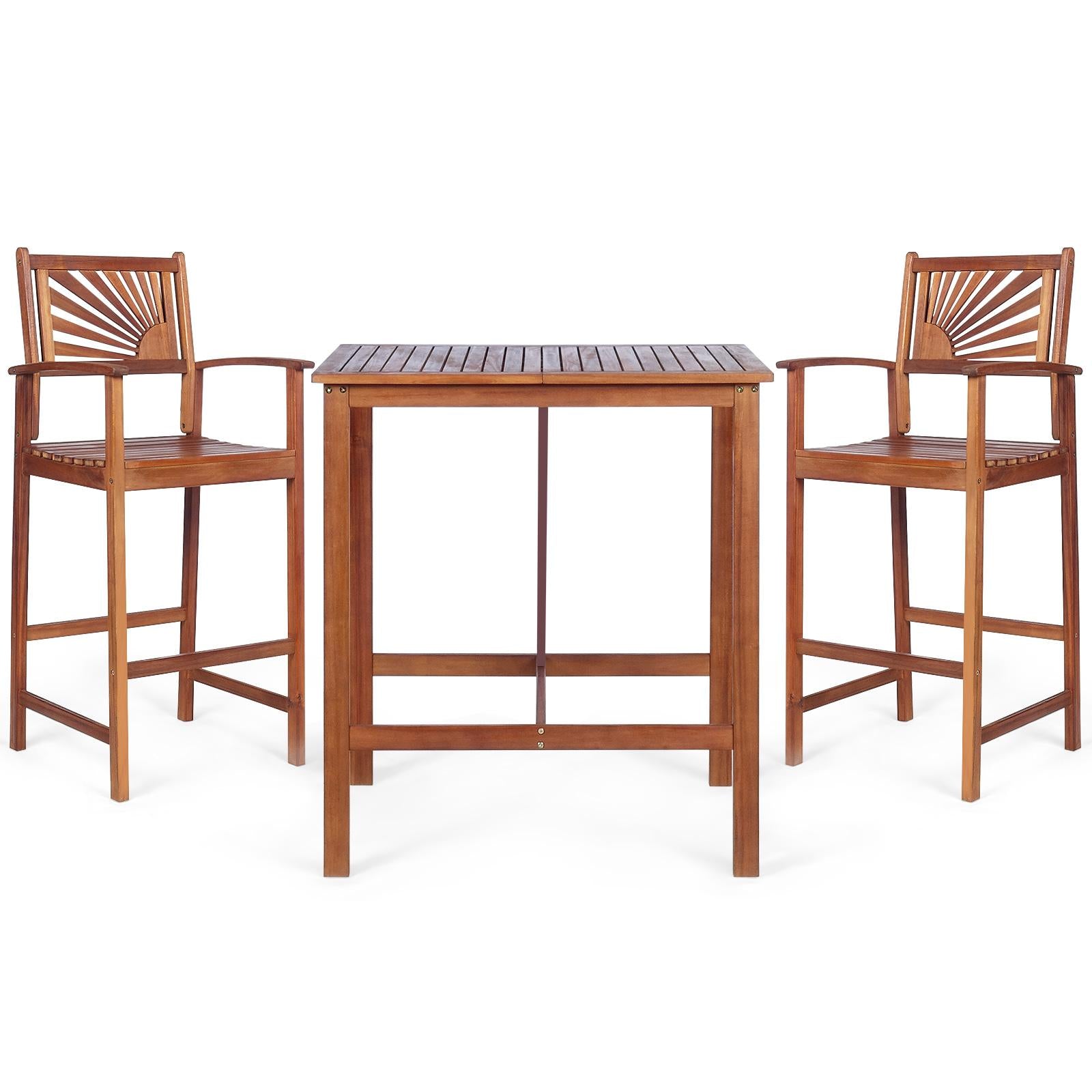 Giantex 3PCS Bar Set, Outdoor Acacia Wood Dining Set, Spacious Tabletop, Comfortable Backrest, Suitable for Sunroom, Backyard, Balcony, Space-Saving Design