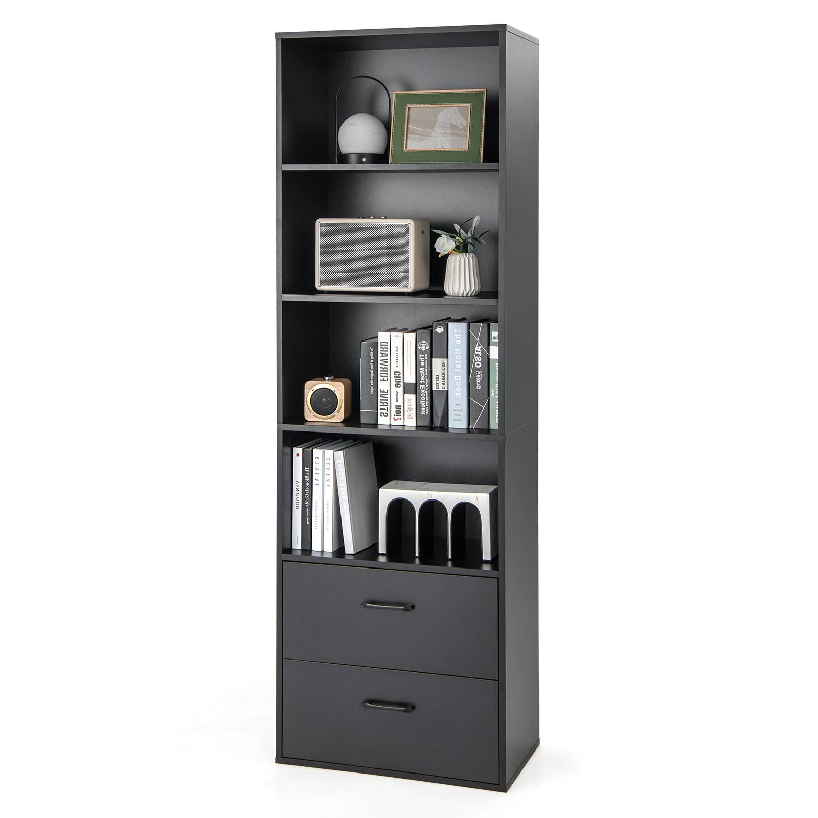 Our bookcase is a firm and well-made piece! 4-tier self and 2 drawers provide ample storage and classified space for a variety of items, which can well suit your storage needs. Crafted of durable engineered wood, our bookcases are sturdy and reliable for long-term use. Equipped with anti-tilting device, the bookcases are not easy to wobble or collapse. Additionally, its modern design and elegant appearance make it match with any home decoration style, which works well in the home and office.