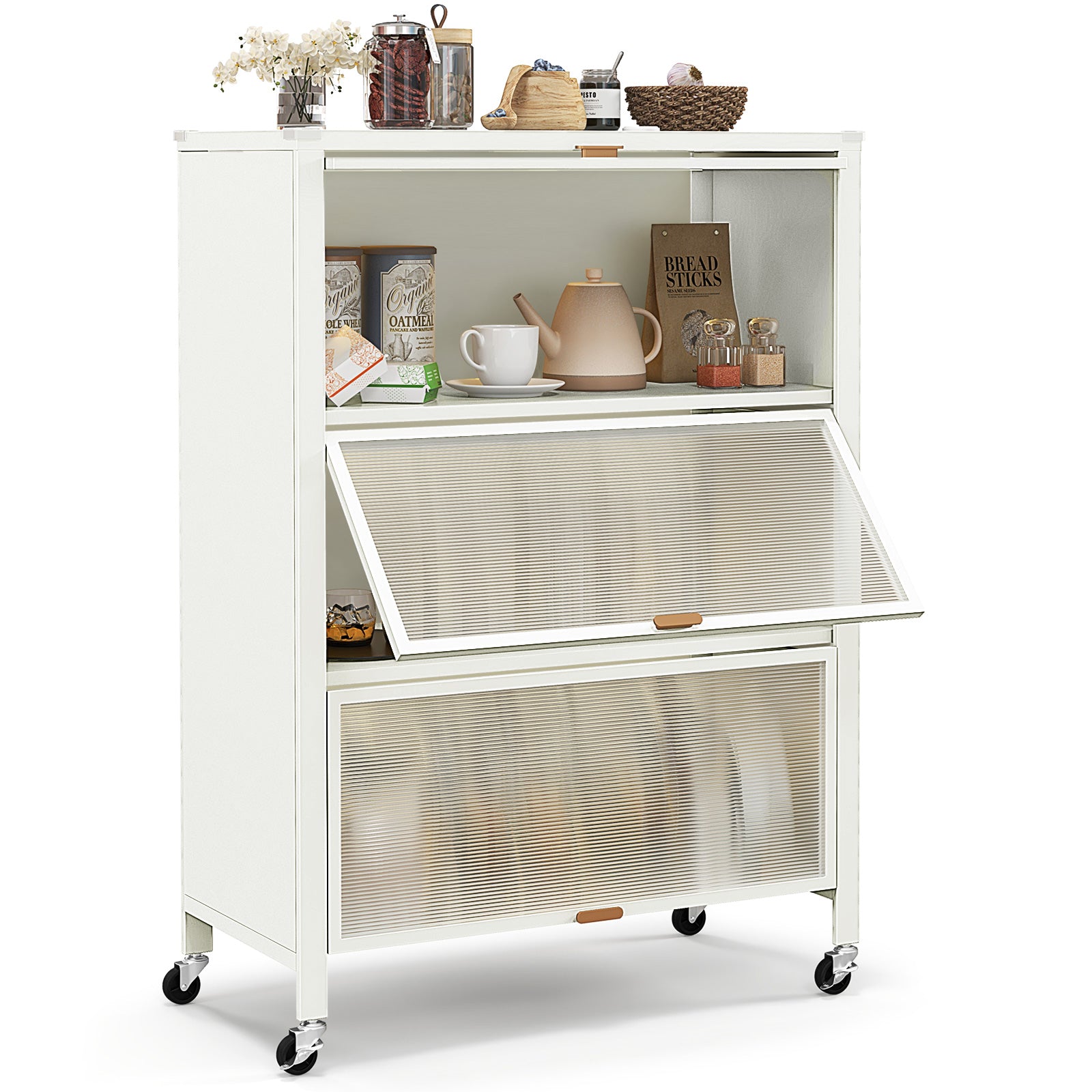 Giantex 4-Tier Kitchen Storage Cabinet, Freestanding Microwaves Rack, Mobile Folding Kitchen Bakers Rack w/Universal Wheels & Flip-Up PC Doors