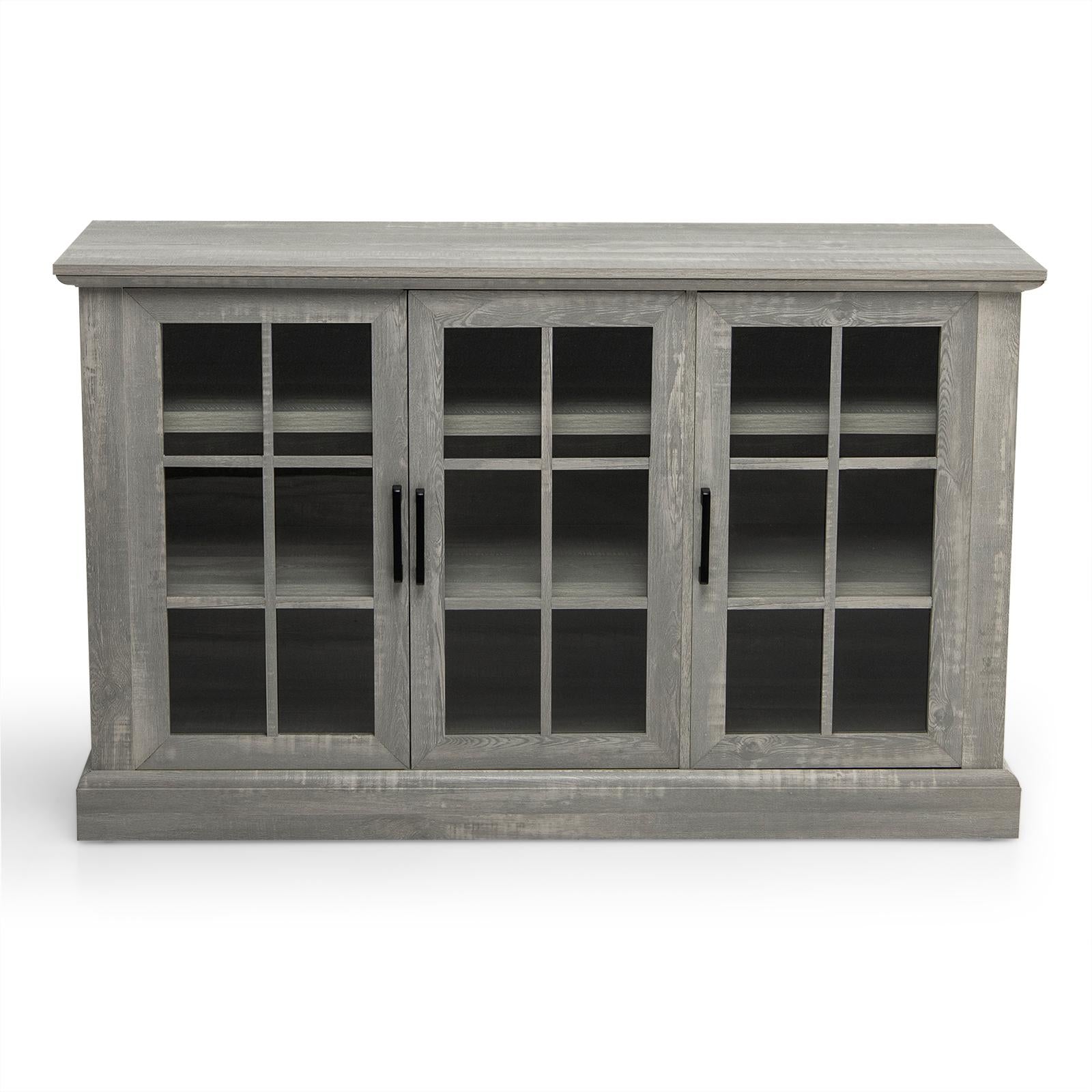 Giantex Buffet Cabinet, Farmhouse Large Sideboard, Wooden Credenza Cupboard w/3 Glass Door Adjustable Shelves & Anti-toppling Design