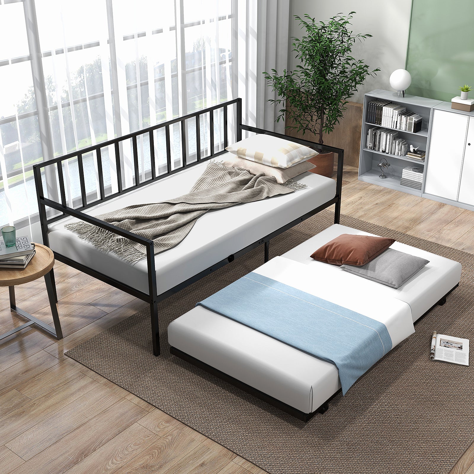 Giantex Daybed w/Trundle, Metal Twin Bed Frame w/Heavy Duty Slat Support, Space-Saving Sofa Bed Frame