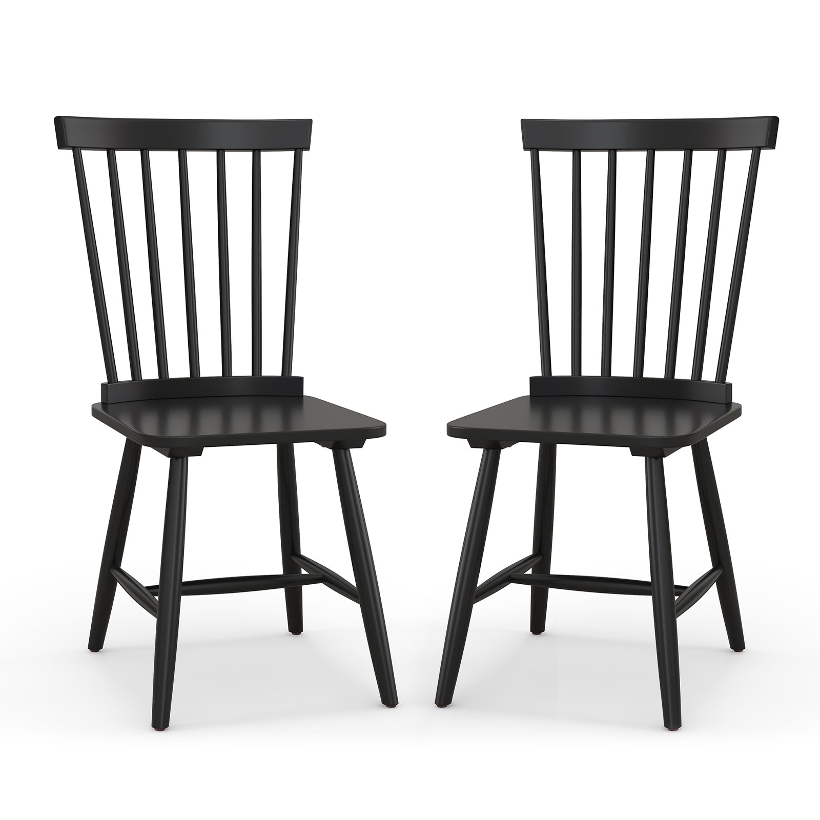 The contoured spindle back adds timeless charm while offering superior support for comfortable seating during meals and get-togethers. Crafted with comfort as a priority, these kitchen side chairs feature a generous and smooth seat surface. Constructed from premium rubberwood, these chairs are designed for lasting durability. The H-frame construction ensures added stability, and the non-slip feet safeguard your floors from damage. Perfect for casual family dinners or elegant dinner gatherings, these dining chairs deliver a functional and stylish seating option.