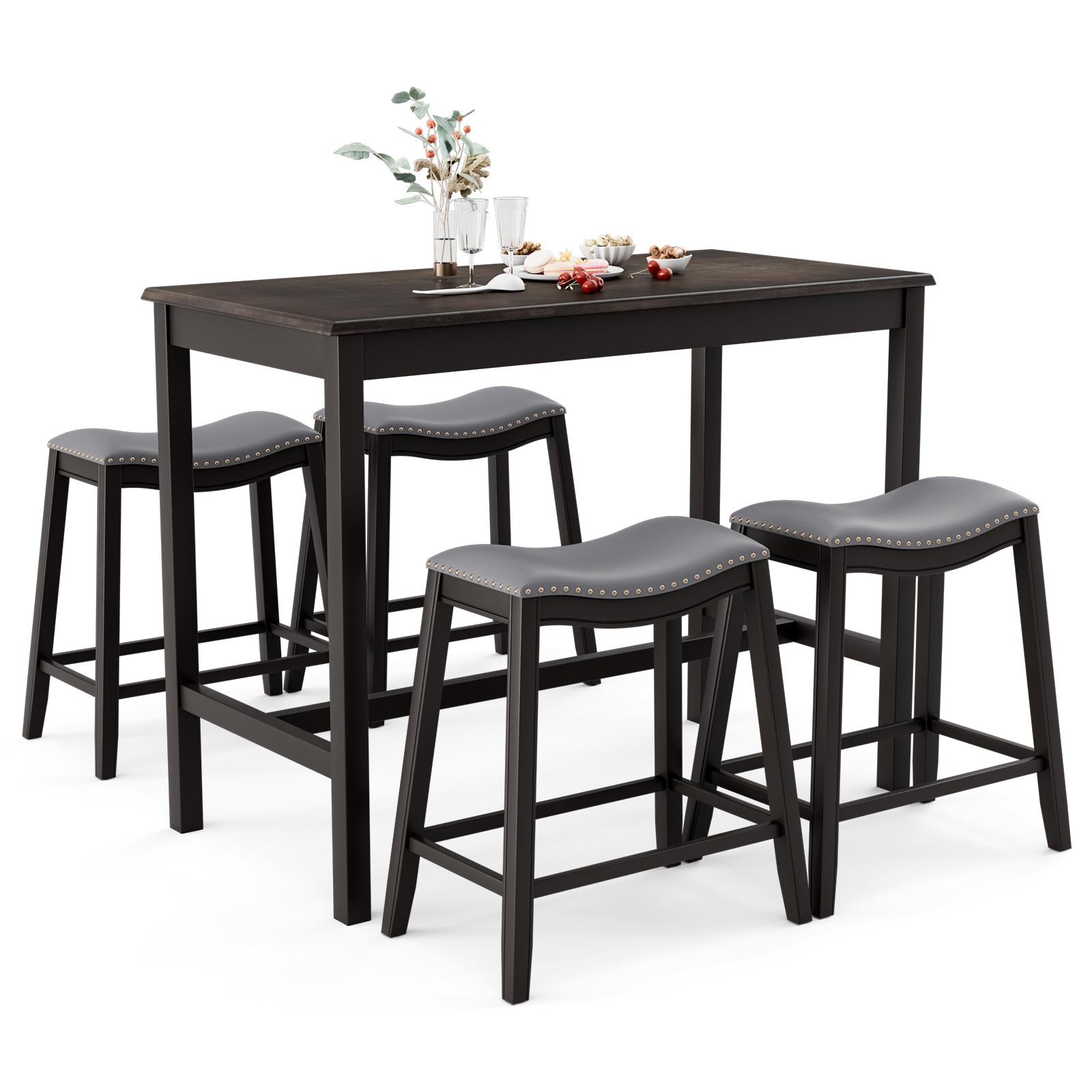 Giantex Dining Table Set for 4, Kitchen Counter Height Table w/4 Stools, Rubber Wood Pub Dinner Table Set