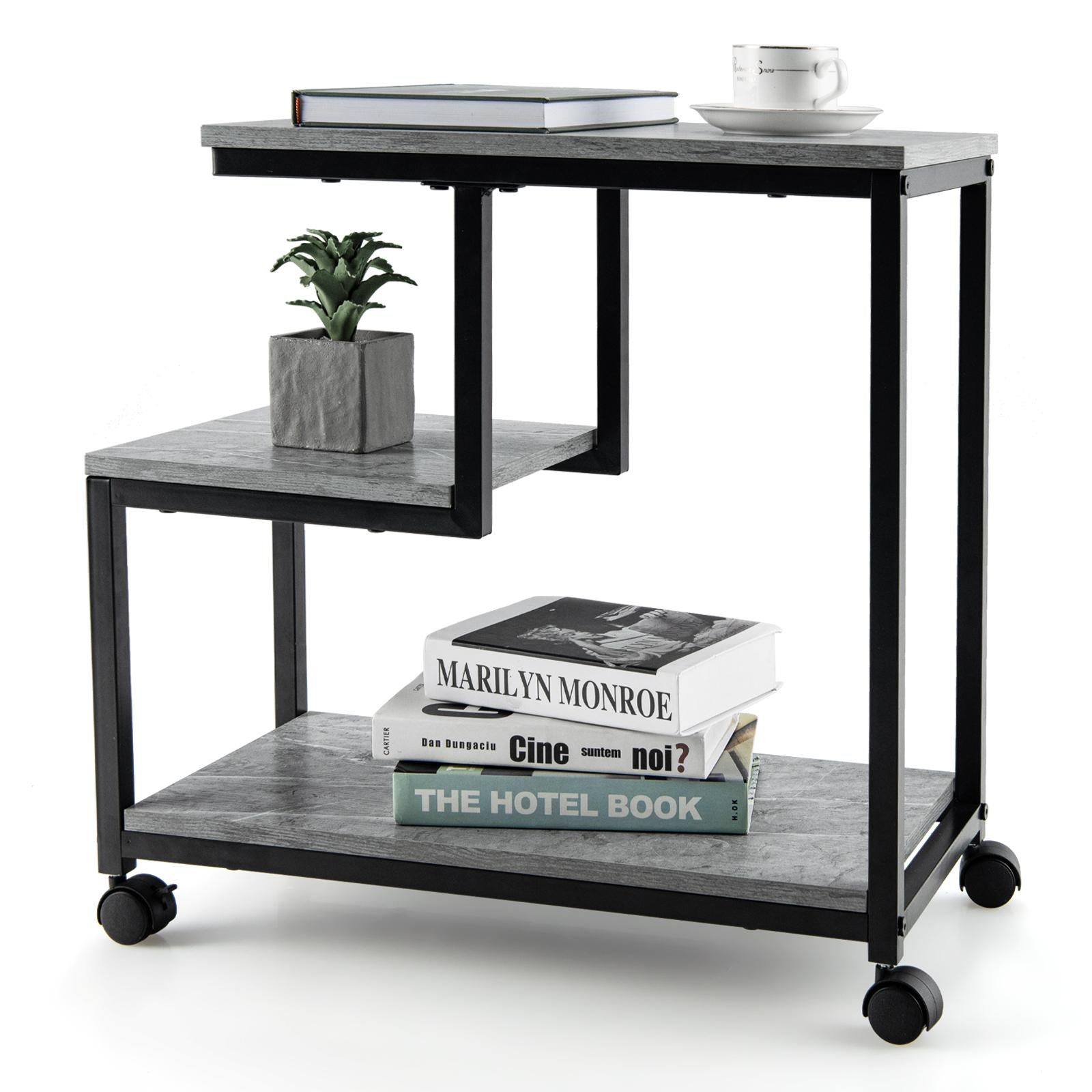 Giantex End Table on Wheels, 3-Tier Sofa Couch Side Table, Ladder-Shaped Nightstand for Home Office (1)