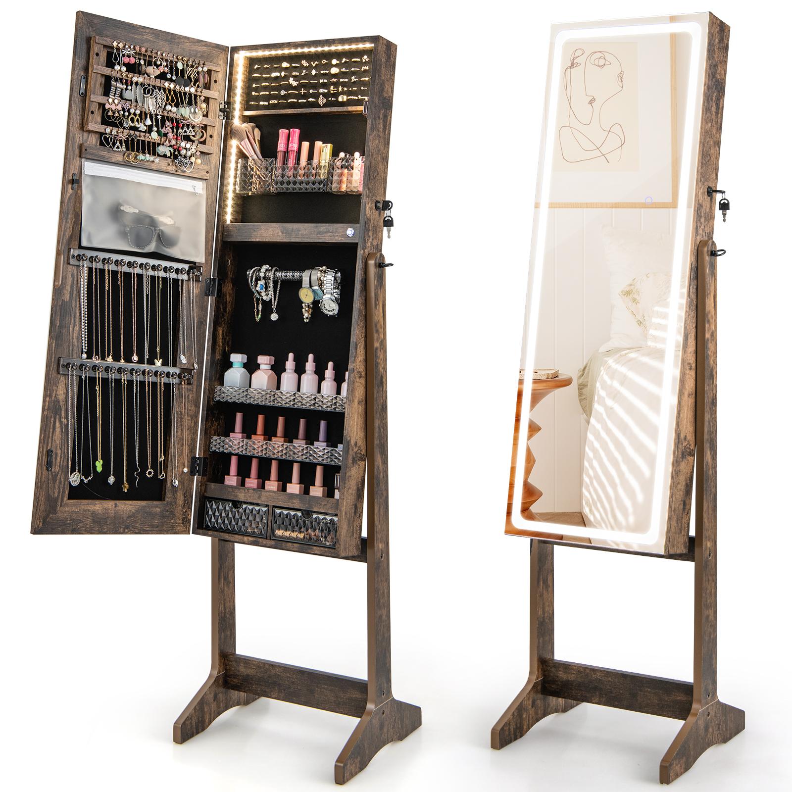 Giantex Full Length Dressing Mirror Jewelry Cabinet, Large Capacity Freestanding Lockable Jewelry Armoire, Rustic Brown