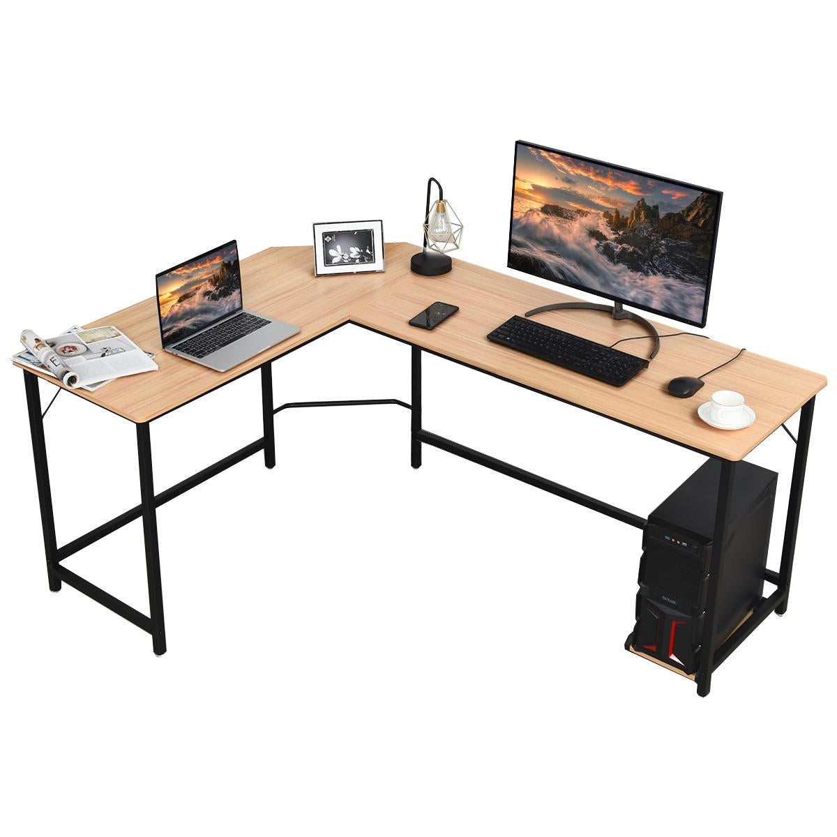 Giantex L-Shaped Working Desk, Computer Gaming Desk, Industry Modern Corner Study Writing Table for Home Office Workstation, Easy Assembly, Natural
