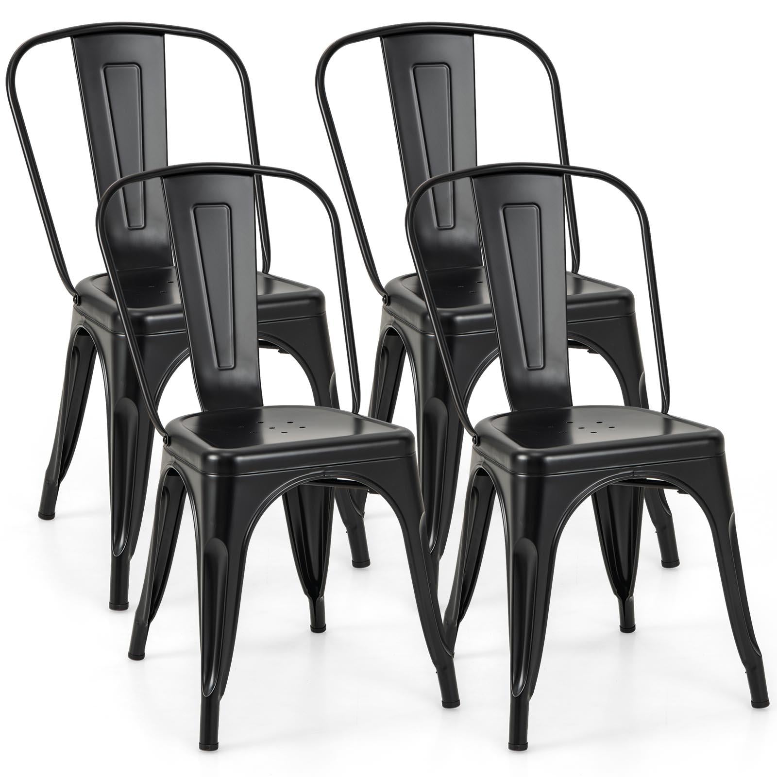 Giantex Metal Bar stools Set of 4, with Removable Back, Cafe Side Chairs w/Detachable Ergonomic Backrest, Stylish and Modern Chairs, for Kitchen, Dining Rooms, and Side Bar, Black