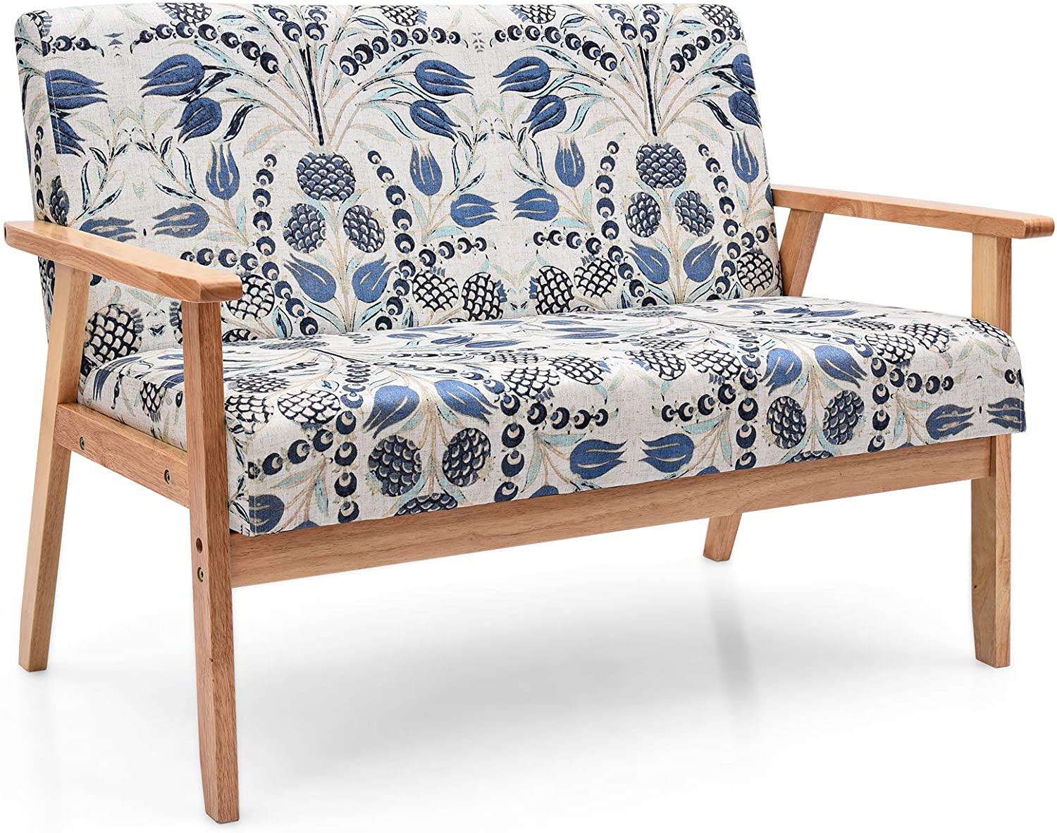 Giantex Modern Upholstered Loveseat, Fabric Loveseat Sofa Recliner Couch Wooden 2-Seat Armchair for Home and Office