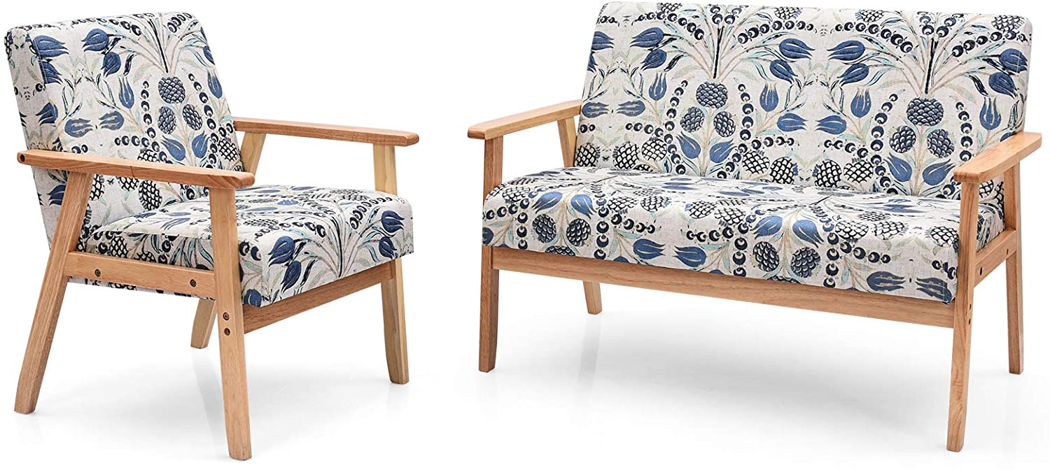 Giantex Modern Upholstered Loveseat, Fabric Loveseat Sofa Wooden Recliner Couch w/2 Seat Armchair, Accent Chair for Home Office
