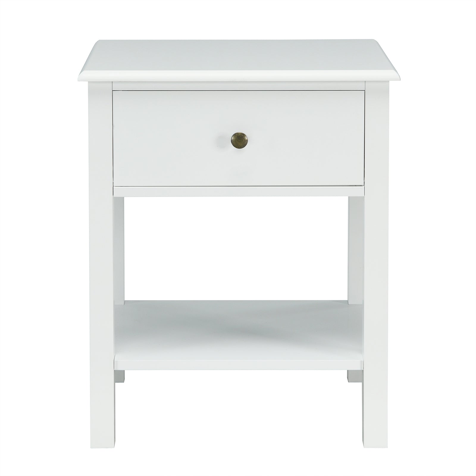 Giantex Nightstand W/Drawer and Shelf, Stable Frame Storage Cabinet for Bedroom, Modern Beside Sofa Accent End Table(1,White)