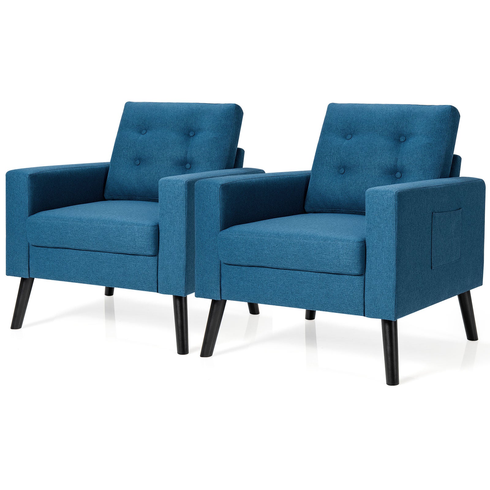 Giantex Set of 2 Upholstered Accent Armchair, Mid Century Modern Single Sofa Chair, Great for Living Room, Bedroom, Office, Navy