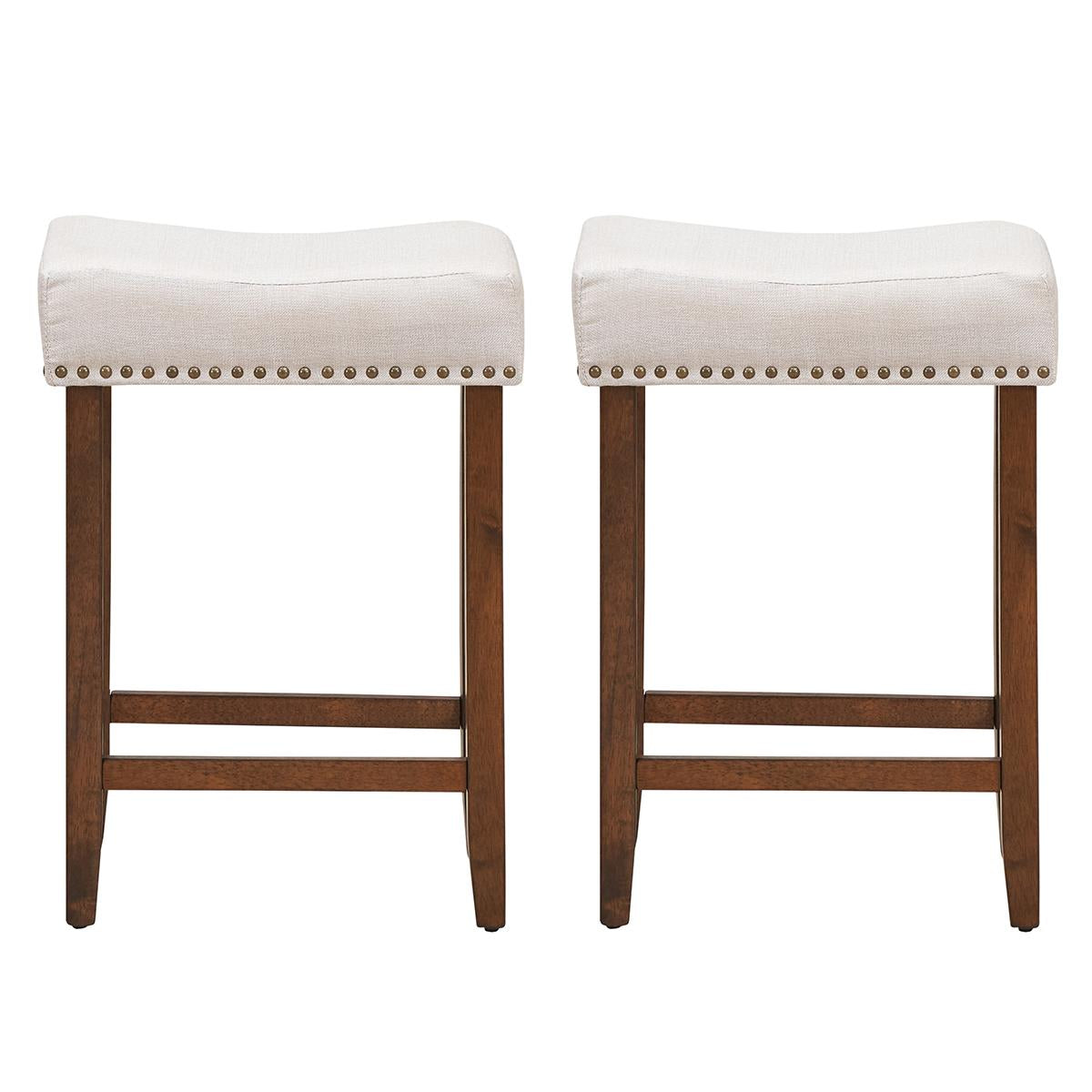 Giantex Wood Saddle Stools, Dining Chair w/Upholstered Cushion for Kitchen, Pub, Beige-2