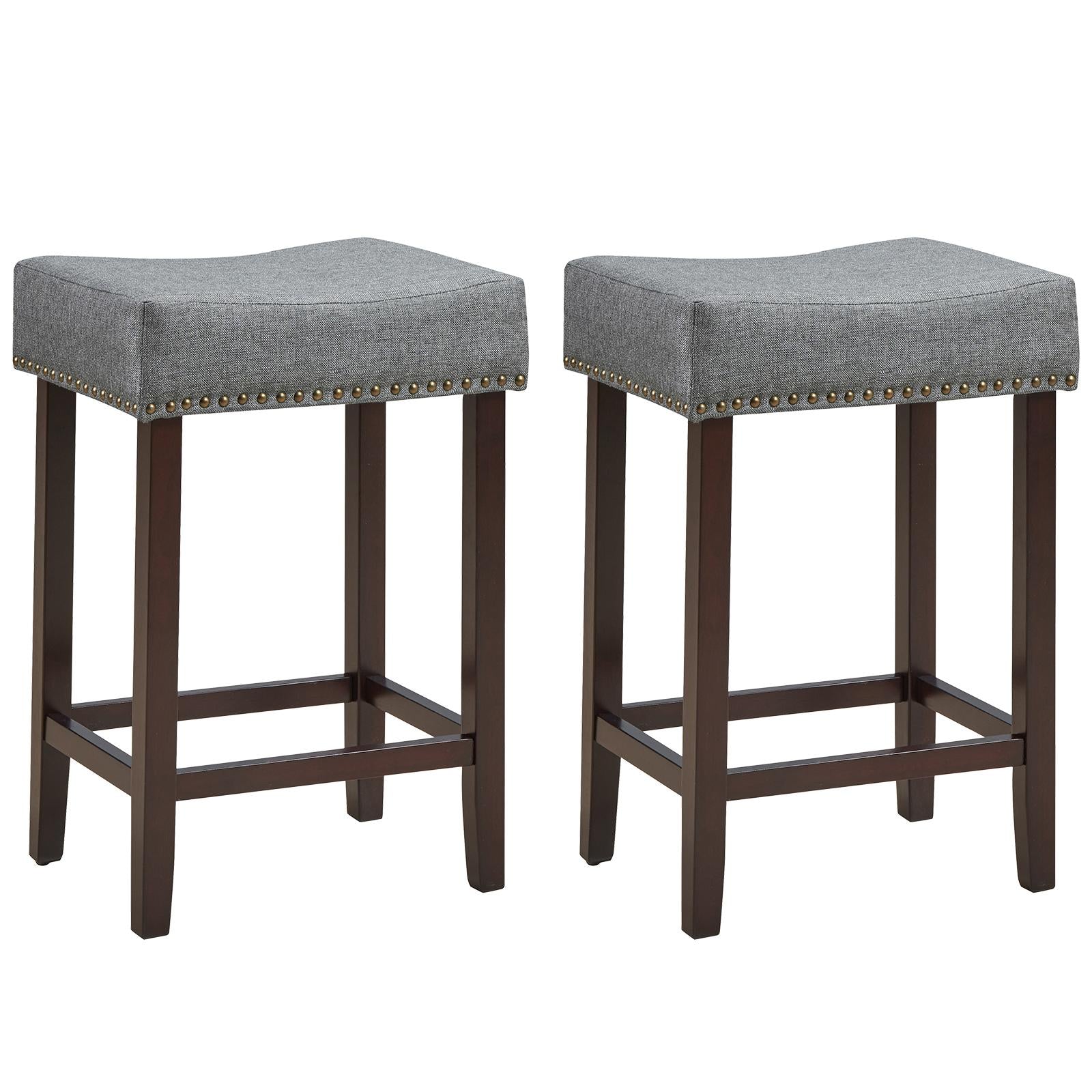 Giantex Wood Saddle Stools, Dining Chair w/Upholstered Cushion for Kitchen, Pub, Gray-2