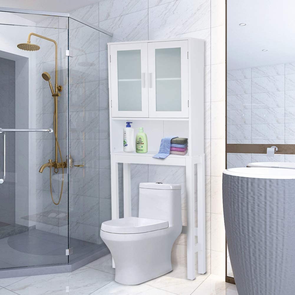 Giantex Wooden Over The Toilet Storage Cabinet, Home Bathroom Space Saver, Double Doors, Adjustable Shelf Organizer, Open Storage Shelf, Freestanding Toilet Storage Rack Unit