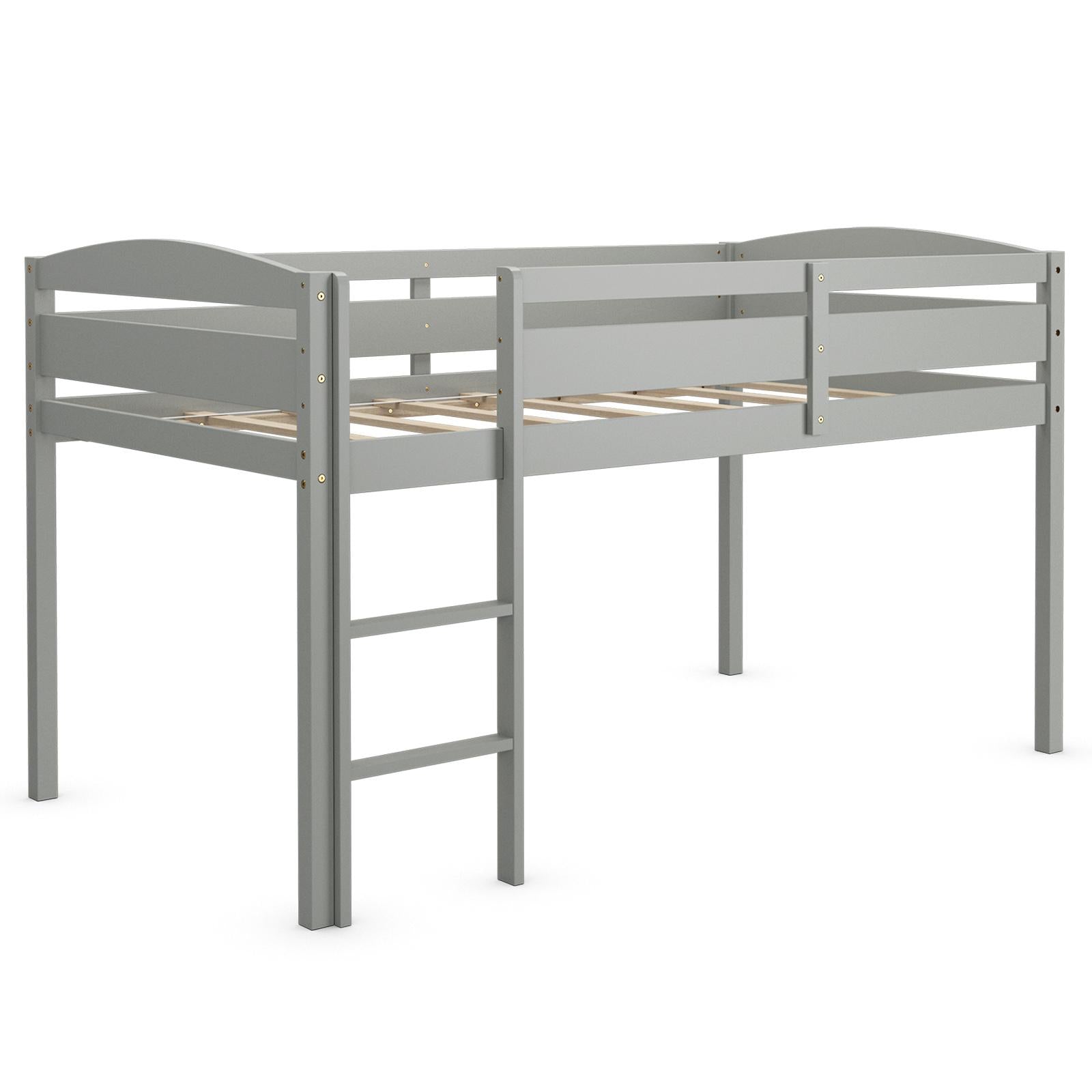 Giantex Wooden Twin Loft Bed, Kids Solid Wood Bed Frame with Ladder & Guardrails, No Box Spring Needed, Easy Assembly, Grey